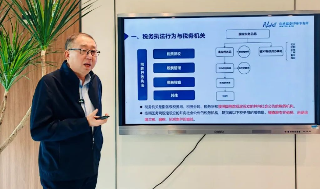 上海功承瀛泰(长春)律师事务所高级合伙人郭维东律师以“税务稽查与企业的应对处理”为主题,概述了税务稽查的基本框架,如稽查局的职责、稽查案件的处理原则,并简要介绍了稽查过程中企业可能遇到的一些常见情况。此外,他还提到了企业在被稽查时应如何配合工作,并给出了审理和执行阶段的建议。