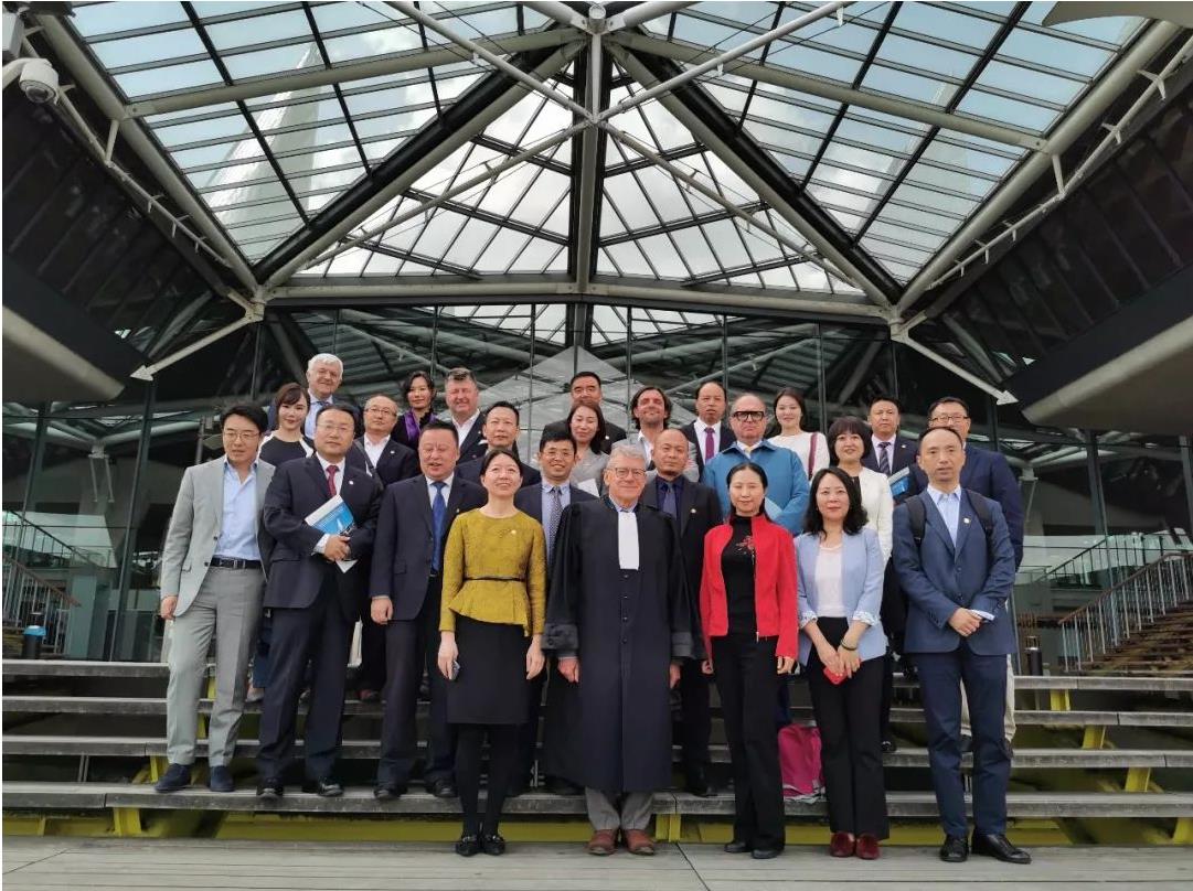 随后,大家参访了久负盛名的国际刑事法院(ICC, International Criminal Court)。法院设有18位法官,每位来自不同国家,此次由韩国籍大法官郑彰镐先生与中世联盟律师一行会面,并做介绍交流。