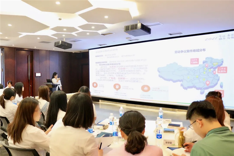 精美的茶歇过后,功承律师事务所创始合伙人郭维东以《法律视野下的人力资源重构》为主题,从招聘入职环节、劳动合同签订、企业规章制度及员工管理、劳动关系解除风险四个角度,深入浅出地讲解了企业应注意的风险防控点,讲解既包含理论深度,又包含生动的实际案例,便于受训员工接受吸收。